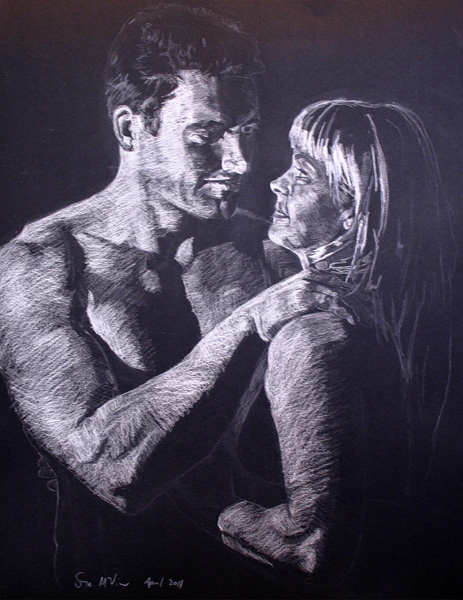 I love this drawing, you captured the moment beautifully. The white looks amazing on the black too, very hard to do, well done. An inspirational artist!